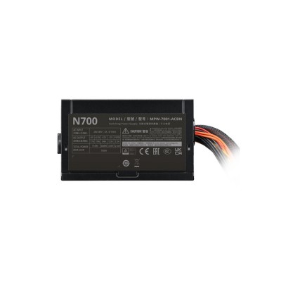 Cooler Master Elite NEX 230V 700. Potenza totale: 700 W, Tensione di ingresso AC: 200 - 240 V, Frequenza di ingresso AC: 47 - 63 Hz. Connettore scheda madre: 24-pin ATX, Lunghezza del cavo di alimentazione della scheda madre: 55 cm, Lunghezza del cavo di alimentazione SATA: 400,550,700 mm. Utilizzo: PC, Fattore di forma dell'unità di alimentazione (PSU): ATX, Tecnologia dei cuscinetti: Sleeve. Colore del prodotto: Nero, Tipo di raffreddamento: Attivo, Diametro del ventilatore: 12 cm. Certificati di conformità: CE, UKCA, Certificazione: ErP 2014 Lot 3