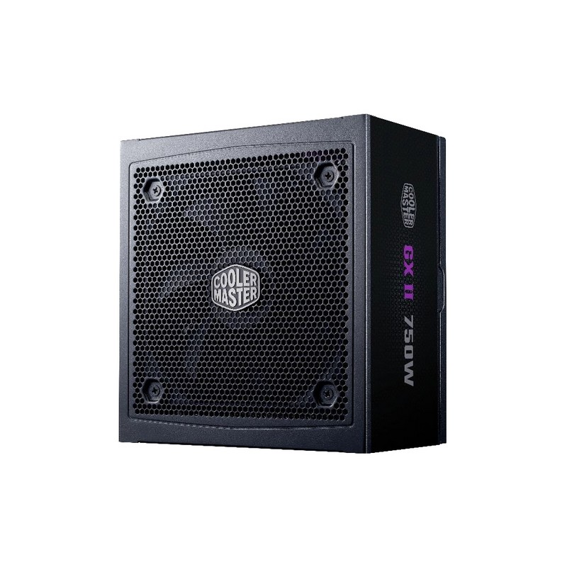 Cooler Master GX II Gold 750 ATX3.1. Potenza totale: 750 W, Tensione di ingresso AC: 100 - 240 V, Frequenza di ingresso AC: 50/60 Hz. Connettore scheda madre: 24-pin ATX, Lunghezza del cavo di alimentazione della scheda madre: 55 cm, Lunghezza del cavo di alimentazione SATA: 500,620,740 mm. Utilizzo: PC, Fattore di forma dell'unità di alimentazione (PSU): ATX, Certificazione 80 PLUS: 80 PLUS Gold. Colore del prodotto: Nero, Tipo di raffreddamento: Attivo, Diametro del ventilatore: 12 cm. Certificati di conformità: BIS, CCC, CE, EAC, Federal Communications Commission (FCC), KC, RCM, RoHS, TÜV mark, UKCA