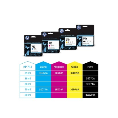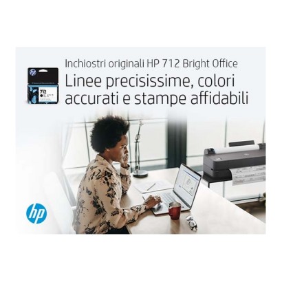 HP Cartuccia di inchiostro nero originale DesignJet 712 da 38 ml. Tipo di cartuccia: Resa standard, Tipo di inchiostro nero: Inchiostro a base di pigmento, Volume dell'inchiostro nero: 38 ml, Tipo di fornitura: Confezione singola, Colori di stampa: Nero, Quantità per pacco: 1 pz