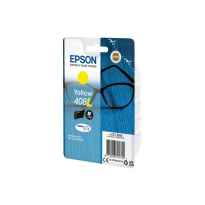 Epson Singlepack Yellow 408L DURABrite Ultra Ink. Tipo di inchiostro a colori: Inchiostro a base di pigmento, Tipo di cartuccia: Resa elevata (XL), Tipo di fornitura: Confezione singola, Resa in pagine dell'inchiostro a colori: 1700 pagine, Volume dell'inchiostro a colori: 21,6 ml, Colori di stampa: Giallo, Quantità per pacco: 1 pz