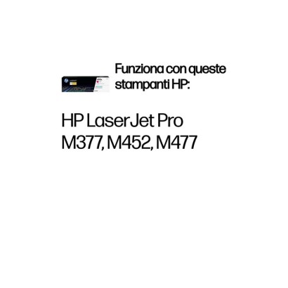 | Compatibilità | Le cartucce toner originali HP 410 funzionano con i seguenti dispositivi: HP LaserJet Pro M377, M452, M477 |