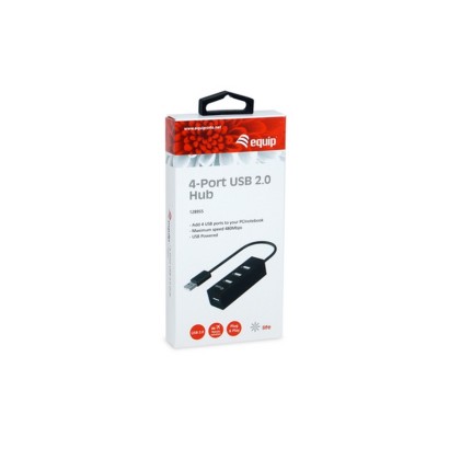 Equip 128955. Interfaccia host: USB 2.0, Interfacce hub: USB 2.0. Velocità di trasferimento dati: 480 Mbit/s, Colore del prodotto: Nero, Paese di origine: Cina. Tipo alimentazione: USB. Sistema operativo Windows supportato: Windows 10, Windows 7, Windows 8, Windows 8.1, Windows Vista, Windows XP, Compatibilità sistema operativo Mac: Mac OS X 10.10 Yosemite, Mac OS X 10.11 El Capitan, Mac OS X 10.12 Sierra, Mac OS X 10.13 High.... Larghezza: 18 mm, Profondità: 20 mm, Altezza: 65 mm