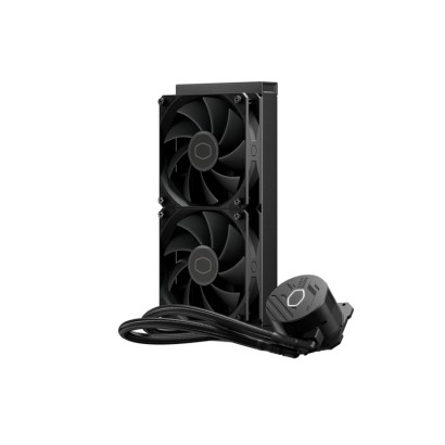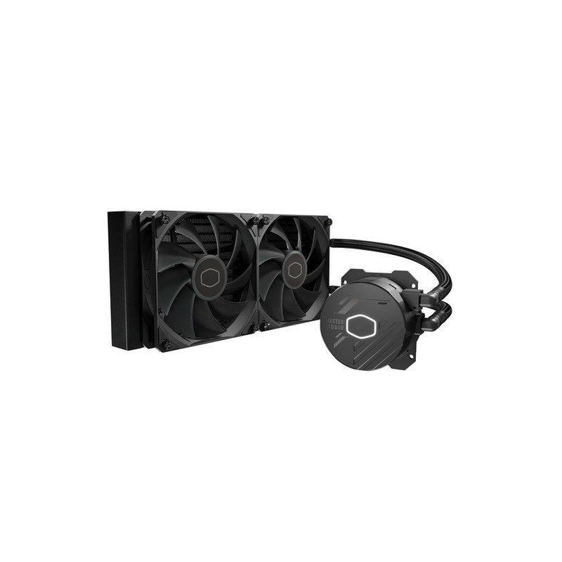 Cooler Master MasterLiquid 240L Core. Tipo: Kit di raffreddamento a liquido, Diametro del ventilatore: 12 cm, Velocità (minima) di rotazione: 650 Giri/min, Velocità (massima) di rotazione: 1750 Giri/min, Rumorosità (velocità alta): 27,2 dB, flusso d'aria massimo: 71,93 pdc/min, pressione dell'aria massima: 1,86 mmH2O, Tipo di cuscinetto: Cuscinetto da strisciamento. Colore del prodotto: Nero