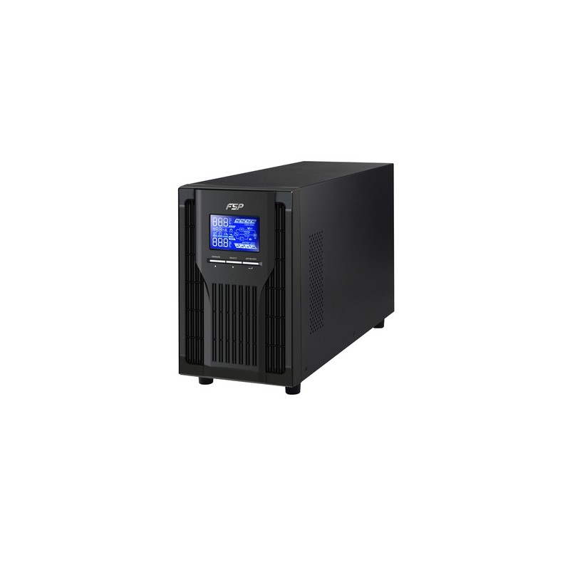 FSP Champ Tower 1K. Topologia UPS: Doppia conversione (online), Potenza in uscita: 1 kVA, Potenza in uscita: 900 W. Tipo di porta USB: USB di tipo B, Tipo interfaccia seriale: RS-232. Capacità della batteria: 9 Ah, Voltaggio della batteria: 12 V, Tempo di salvataggio minimo a pieno carico: 3,2 min. Fattore di forma: Tower, Colore del prodotto: Nero, Tipo di controllo: Pulsanti. Cavi inclusi: Cavo di alimentazione di ingresso, Cavo USB