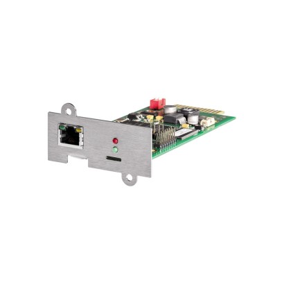 Legrand CS141B SK. Tipo di prodotto: Scheda di gestione della rete, Colore del prodotto: Verde, Grigio, Supporto MIB: RFC 1628. Tipo interfaccia: RJ-45. Tipo di interfaccia Ethernet: Fast Ethernet, Velocità trasferimento Ethernet LAN: 10,100 Mbit/s, Tecnologia di cablaggio: 10/100. Protocolli di gestione: SNMP v2/v3, Protocolli di rete supportati: IPv4, IPv6, HTTP, HTTPS, DNS, DHCP, SMTP, NTP, SFTP, UPSTCP (UNMS), MODBUS over IP, RCCMD. Voltaggio di ingresso: 12 V, Corrente d'ingresso: 0.15 A