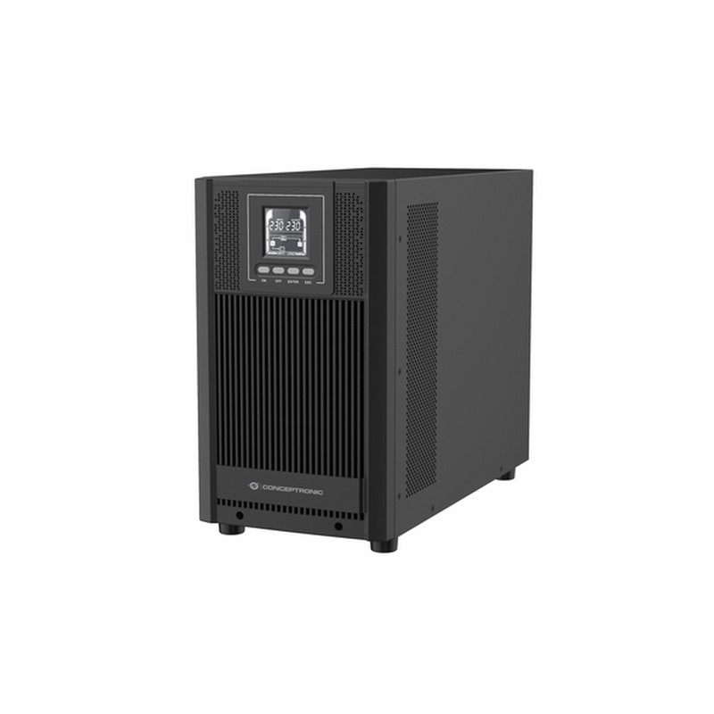 Conceptronic ZEUS52E3K. Topologia UPS: Doppia conversione (online), Potenza in uscita: 3 kVA, Potenza in uscita: 2700 W. Tipo di uscita AC: Accoppiatore C13, Accoppiatore C19, Presa di corrente: Accoppiatore C19, Quantità prese AC: 5 presa(e) AC. Capacità della batteria: 9 Ah, Voltaggio della batteria: 12 V, Tempo di ricarica: 4 h. Fattore di forma: Tower, Colore del prodotto: Nero, Tipo di raffreddamento: Attivo. Certificati di conformità: CE, RoHS