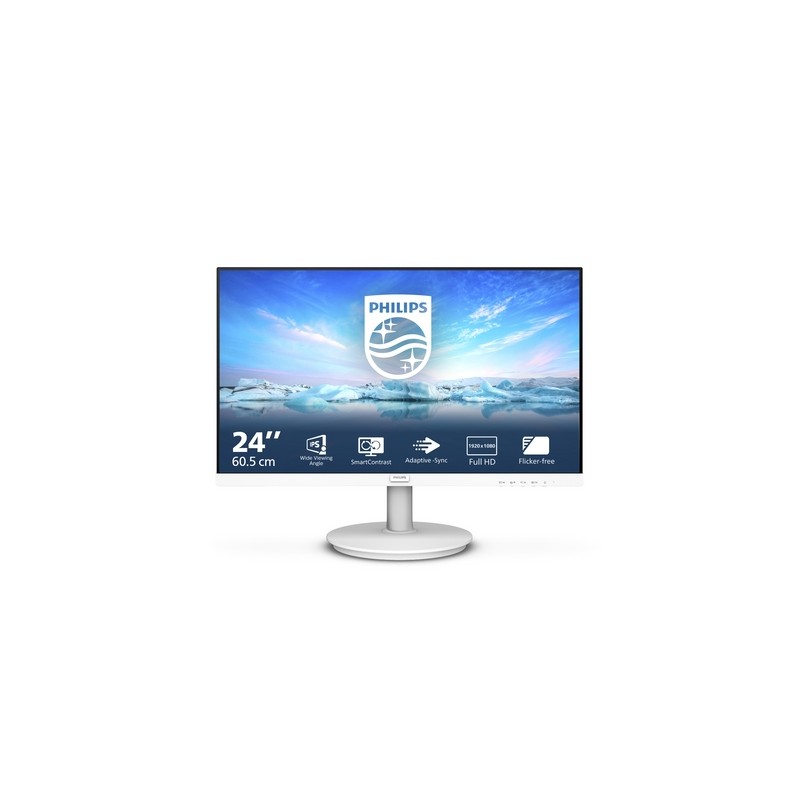 Philips V Line 241V8AW/00. Dimensioni diagonale schermo: 60,5 cm (23.8"), Risoluzione del display: 1920 x 1080 Pixel, Tipologia HD: Full HD, Tecnologia display: LCD, Tempo di risposta: 4 ms, Rapporto d'aspetto nativo: 16:9, Angolo di visualizzazione (orizzontale): 178°, Angolo di visualizzazione (verticale): 178°. Altoparlanti incorporati. Montaggio standard VESA. Colore del prodotto: Bianco