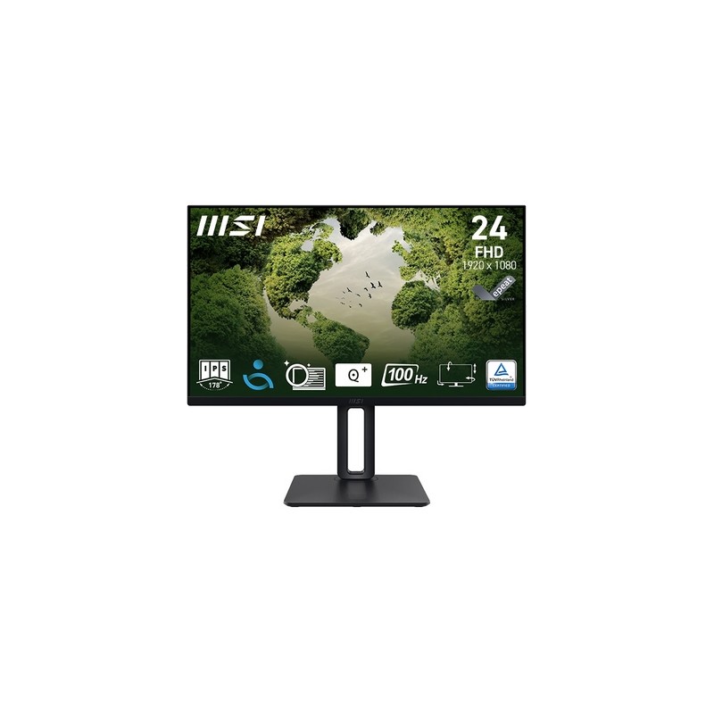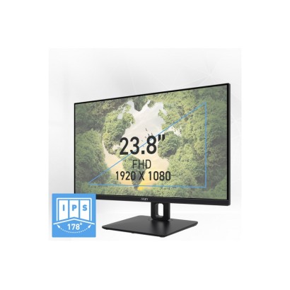 MSI Pro MP245PG. Dimensioni diagonale schermo: 60,5 cm (23.8"), Risoluzione del display: 1920 x 1080 Pixel, Tipologia HD: Full HD, Tecnologia display: LCD, Tempo di risposta: 4 ms, Rapporto d'aspetto nativo: 16:9, Angolo di visualizzazione (orizzontale): 178°, Angolo di visualizzazione (verticale): 178°. Altoparlanti incorporati. Montaggio standard VESA, Regolazione altezza. Colore del prodotto: Nero