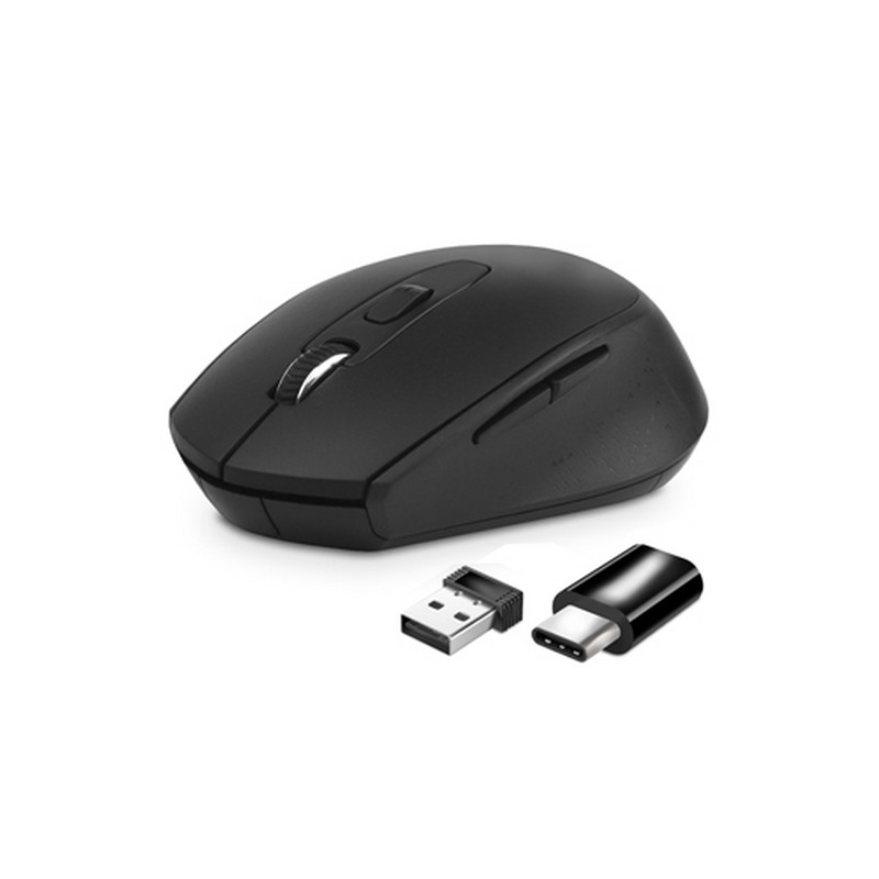 Atlantis Land Wireless Office 7030G. Fattore di forma: Mano destra. Tecnologia di rilevamento del movimento: Ottico, Interfaccia dispositivo: RF Wireless + USB Type-C, Risoluzione movimento: 1600 DPI, Tipo di pulsanti: Tasti premuti, Numero di tasti: 6, Tipo di scorimmento: Rotella. Alimentazione: Batterie. Colore del prodotto: Nero