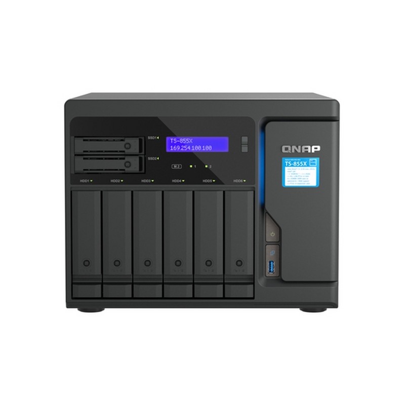 QNAP TS-855X. Tipo: SAN. Tipo di case: Tower. Classe del dispositivo: Casa e piccoli uffici. Famiglia processore: Intel Atom®, Modello del processore: C5125, Frequenza del processore: 2,8 GHz. RAM installata: 8 GB, Tipo di RAM: DDR4. Capacità di archiviazione totale installata: 0 TB. Sistema operativo incluso: QNAP QTS