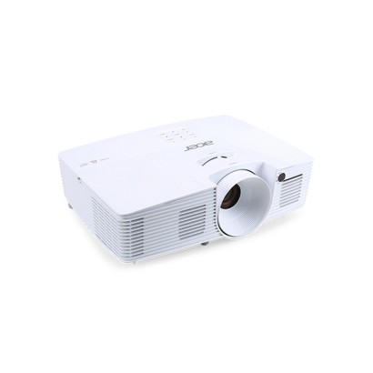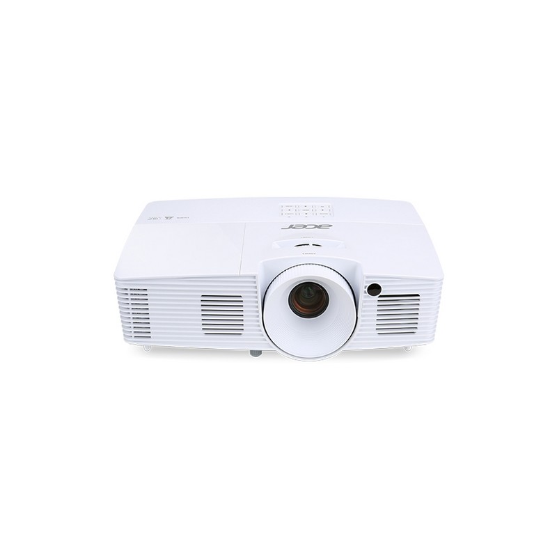 Acer Essential X137WH. Luminosità proiettore: 3700 ANSI lumen, Tecnologia di proiezione: DLP, Risoluzione nativa del proiettore: WXGA (1280x800). Tipo di sorgente luminosa: Lampada, Durata della sorgente luminosa: 5000 h, Durata della sorgente luminosa (modalità risparmio): 6000 h. Messa a fuoco: Manuale, Lunghezza focale: 21.85 - 24 mm, Range di apertura (F-F): 2,41 - 2,53. Formato video analogico: NTSC, PAL, SECAM, Risoluzioni grafiche supportate: 1280 x 800 (WXGA), 1920 x 1200 (WUXGA), Modalità video supportate: 720p. Emissione acustica: 31 dB, Emissione acustica (modalità economica): 28 dB