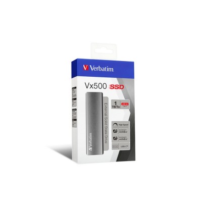 Verbatim Vx500. Capacità SSD: 1 TB. Connettore USB: USB tipo-C, Versione USB: 3.2 Gen 2 (3.1 Gen 2). Velocità di lettura: 500 MB/s, Velocità di scrittura: 440 MB/s. Velocità di trasferimento dati: 10 Gbit/s. Colore del prodotto: Argento