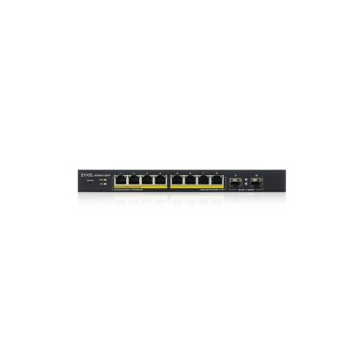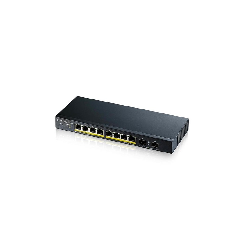 Zyxel GS1900-10HP. Tipo interruttore: Gestito, Livello del commutatore: L2. Tipo di porte RJ-45: Gigabit Ethernet (10/100/1000), Quantità di porte RJ-45: 8, Console port: RJ-45. Dimensioni tavola MAC: 8000 voci, Capacità di commutazione: 20 Gbit/s. Standard di rete: IEEE 802.1D, IEEE 802.1p, IEEE 802.1s, IEEE 802.1w, IEEE 802.3, IEEE 802.3ab, IEEE 802.3at, IEEE.... Supporto Power over Ethernet (PoE). Montabile a parete