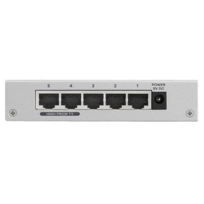 Zyxel ES-105A. Tipo interruttore: Non gestito. Tipo di porte RJ-45: Fast Ethernet (10/100), Quantità di porte RJ-45: 5. Full duplex. Dimensioni tavola MAC: 1000 voci, Capacità di commutazione: 1 Gbit/s. Standard di rete: IEEE 802.3, IEEE 802.3az, IEEE 802.3u, IEEE 802.3x. Connettore di alimentazione: Jack DC-ingresso