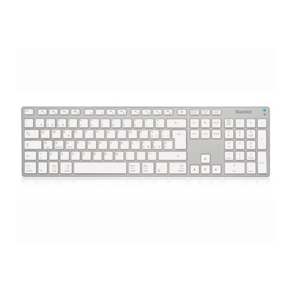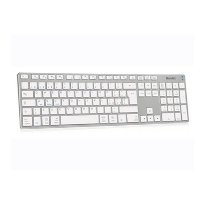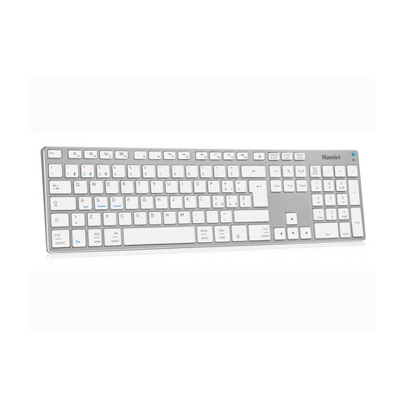 Hamlet XKKITA-MCBT. Fattore di forma tastiera: Full-size (100%). Stile tastiera: Dritto. Tecnologia di connessione: Wireless, Interfaccia dispositivo: Bluetooth, Interruttore a chiave per tastiera: Interruttore a chiave meccanica, Utilizzo raccomandato: Universale. Colore del prodotto: Argento, Bianco